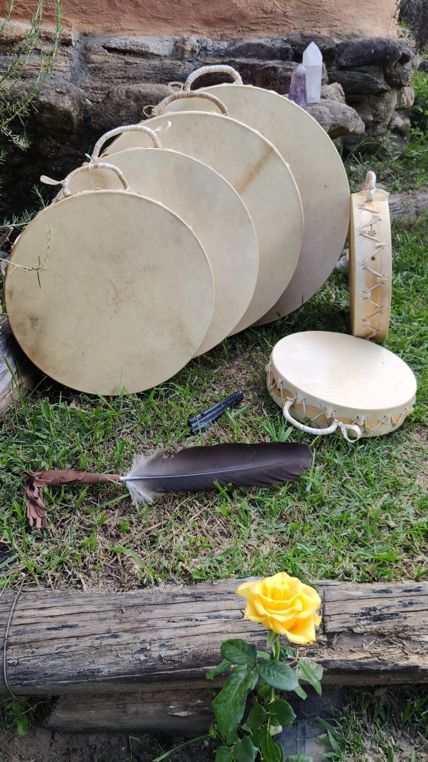 Confeccionamos os Instrumentos sagrados com materiais naturais para apoiar práticas espirituais. Nesse sentido, conheça as peças únicas feitas à mão com dedicação e qualidade superior. Além disso, os Tambores xamânicos elaborados com matéria-prima selecionadas para um som autêntico.